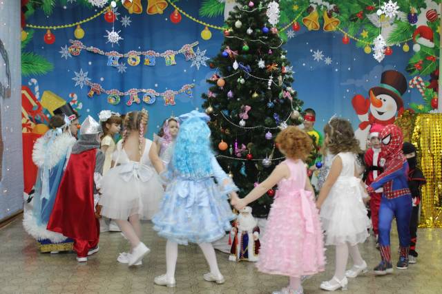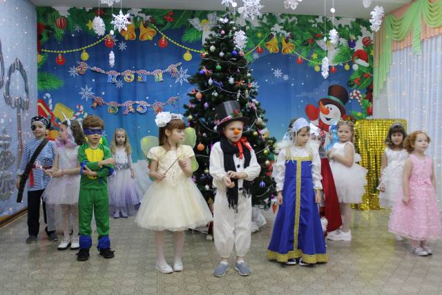 Новогодний праздник в старше-подготовительной групее в лисой Алисой и Котом Базилио. |